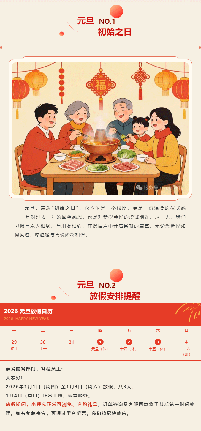 元旦快乐 | 九州好礼与您温暖相伴,共迎2026